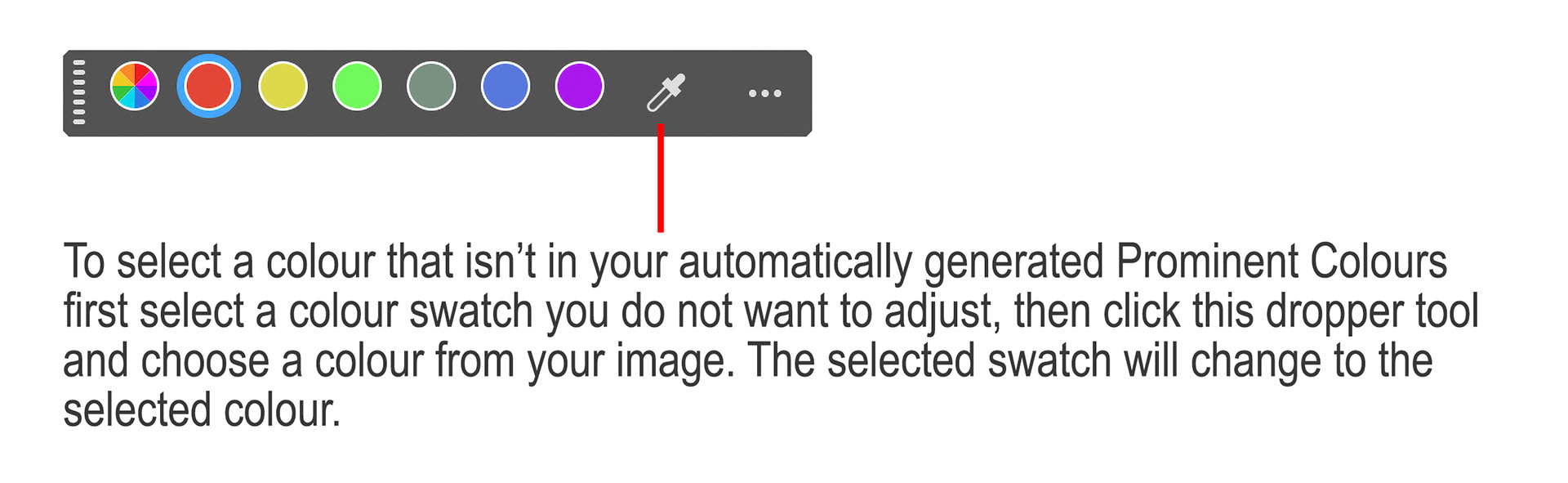 If the colour you want to adjust is not automatically chosen as one of the prominent colours you can choose a colour manually using the Contextual Task Bar. First, click one the colour swatches you are not using, then click the dropper and choose the required colour from your image (see Figure 3). The colour swatch will change to the selected colour, and you can now adjust it using the sliders.