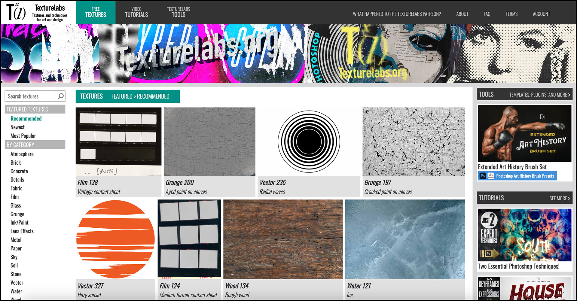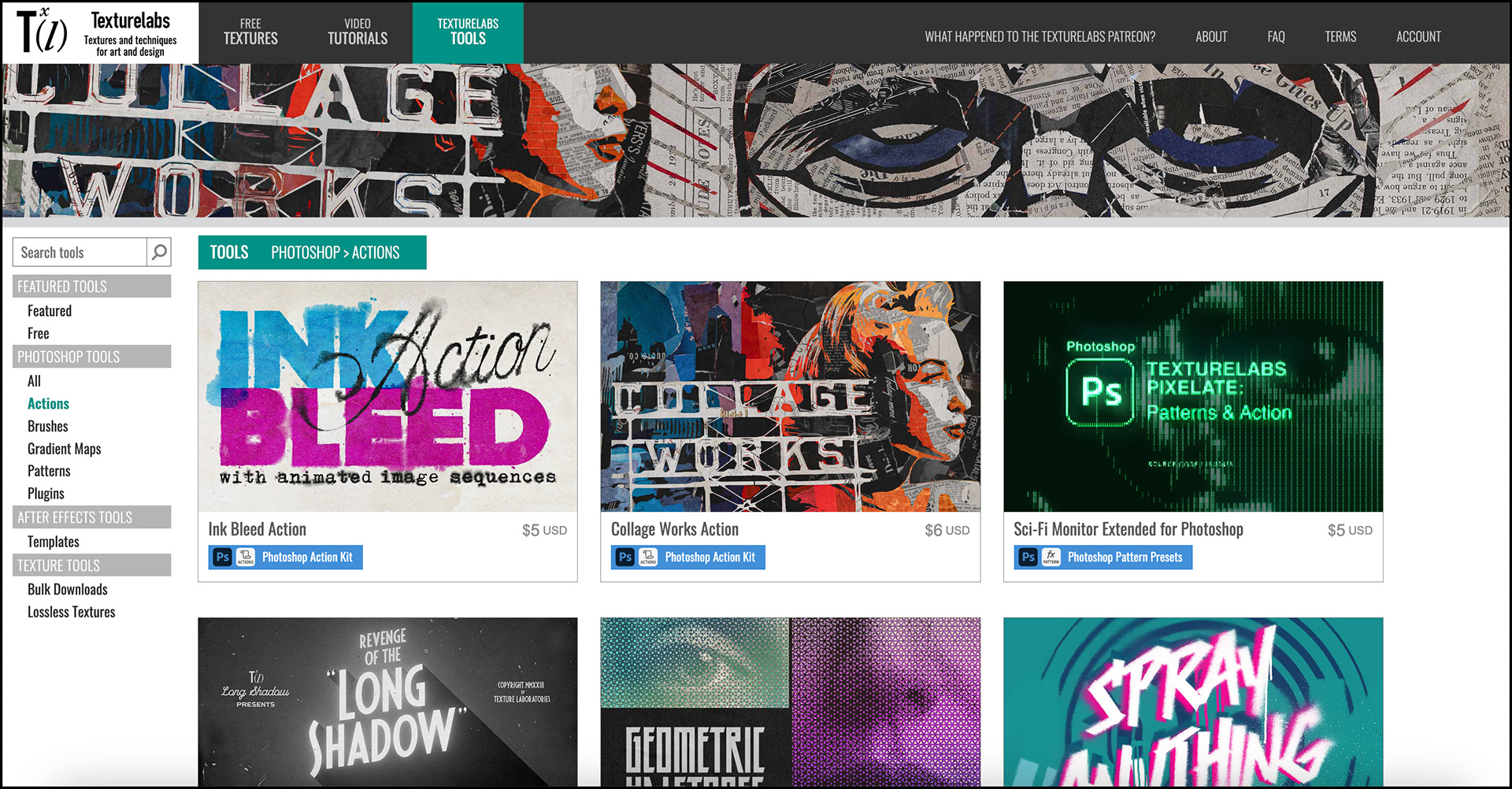 The third section of the Texturelabs site is the Tools section, here Brady makes available a range of tools like plugins, brush sets, actions, gradient map presets, and pattern presets. Many of these are free, but some come at a very small cost.